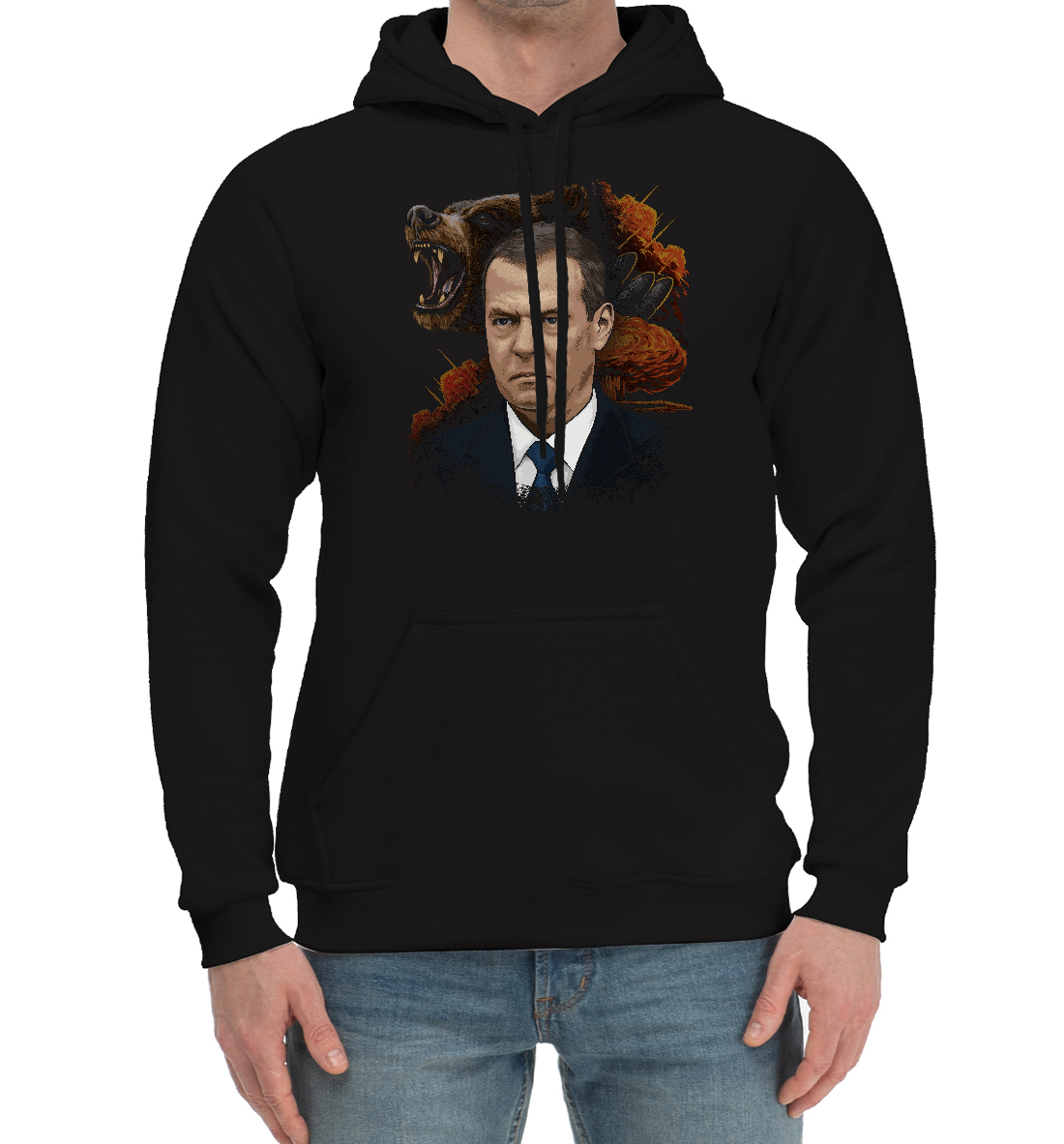 Мужской хлопковый худи с принтом «Дмитрий Медведев с медведем»