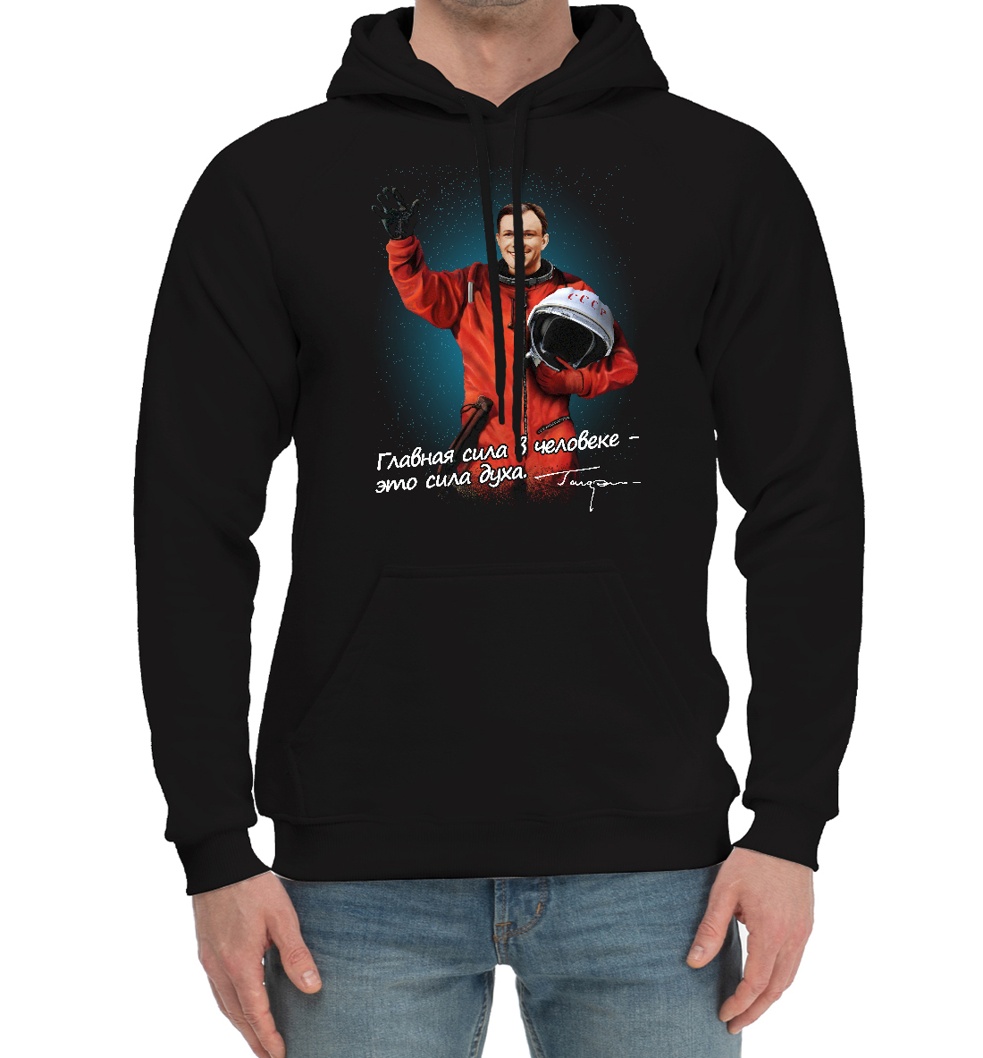 Мужской хлопковый худи с принтом «Гагарин - Сила Духа»