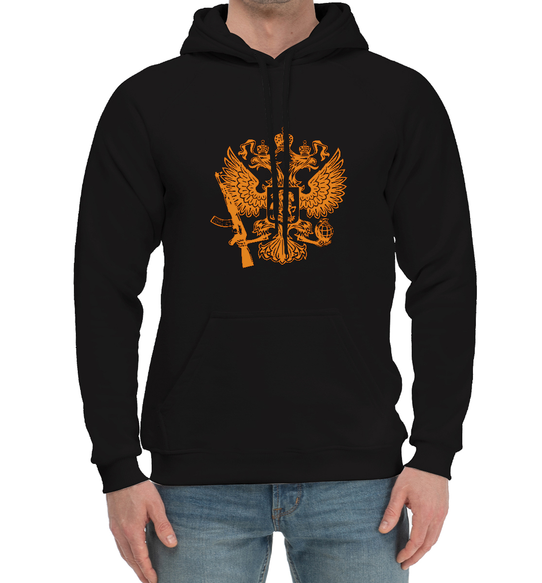 Мужской хлопковый худи с принтом «Герб РФ с автоматом»