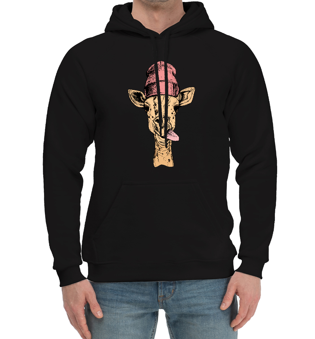 Мужской хлопковый худи с принтом «Жираф дразнит языком»