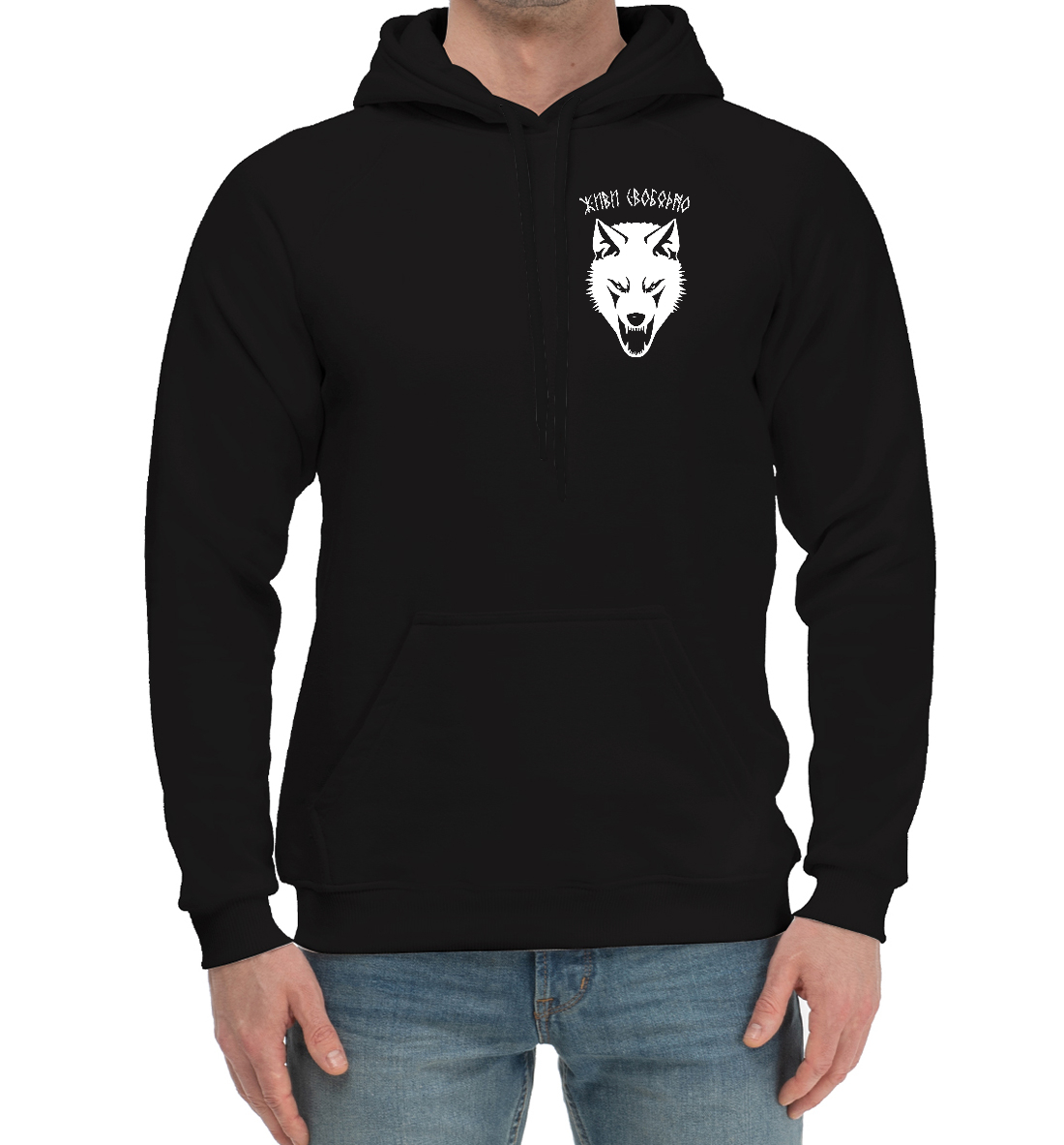 Мужской хлопковый худи с принтом «Живи свободно (белый волк)»