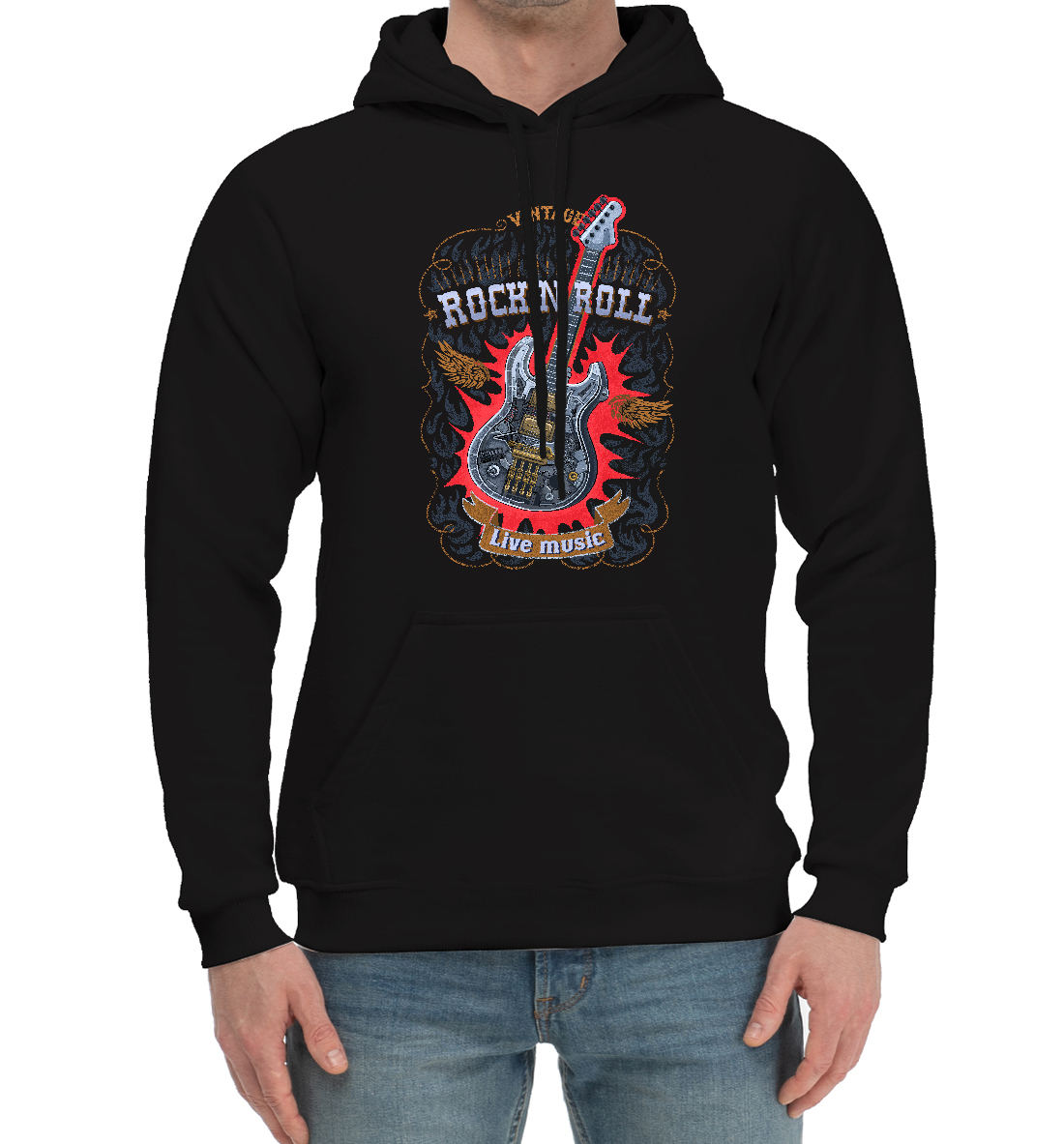 Мужской хлопковый худи с принтом «Гитара стимпанк с надписью rock n roll»