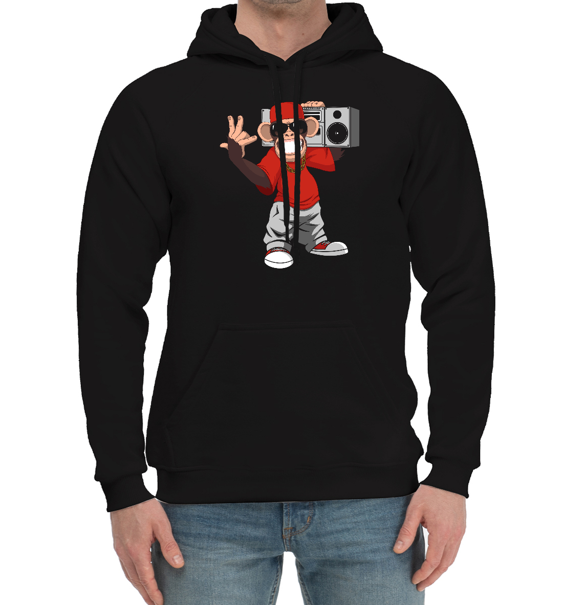 Мужской хлопковый худи с принтом «Горилла с магнитофном»