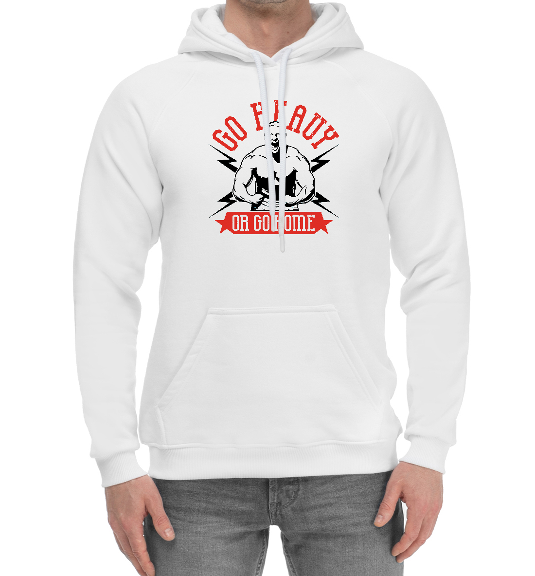 Мужской хлопковый худи с принтом «Качайся или Вали»