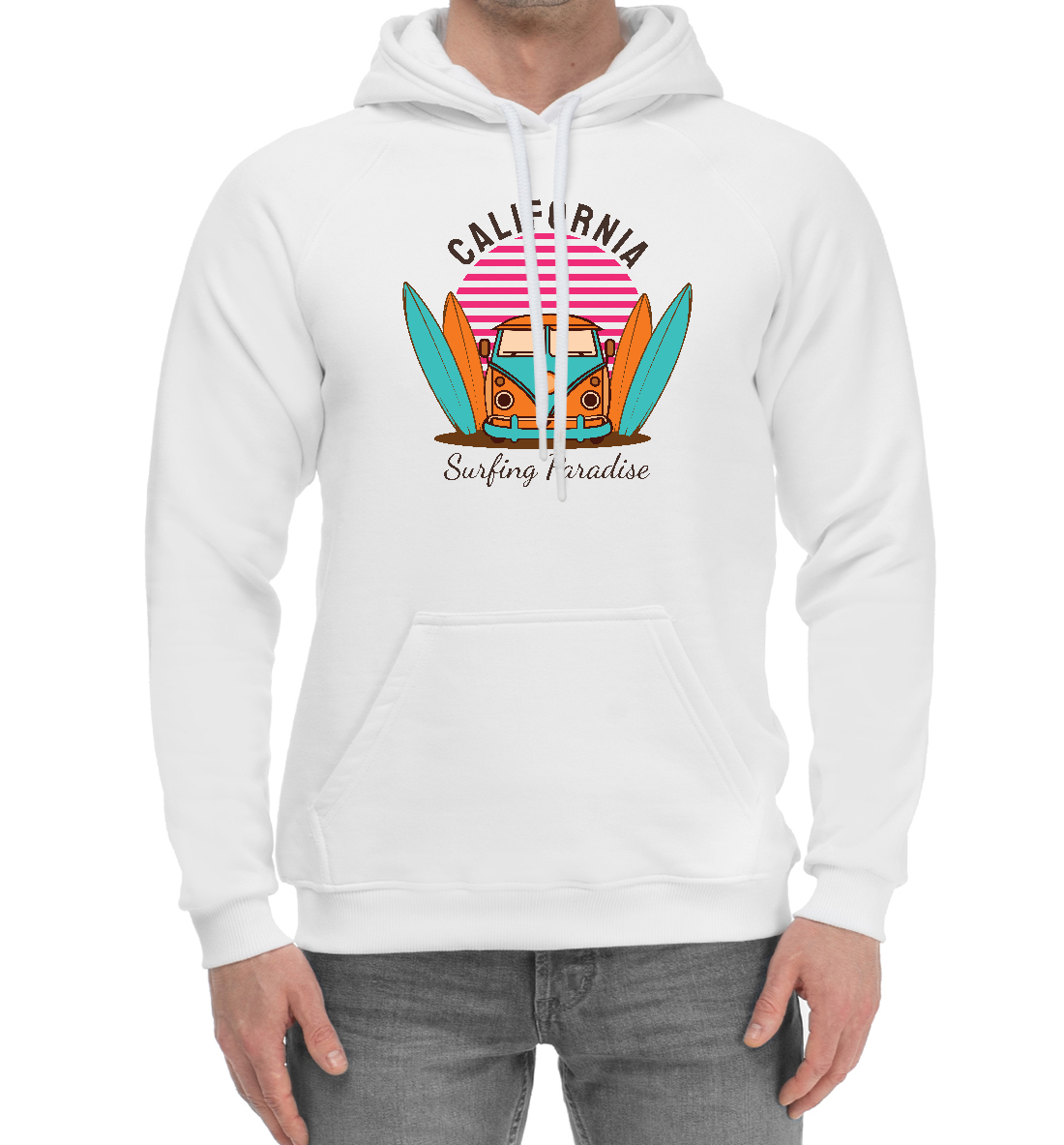 Мужской хлопковый худи с принтом «Калифорния. Рай для серфера»