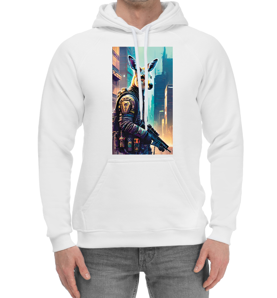 Мужской хлопковый худи с принтом «Кенгуру - воин»