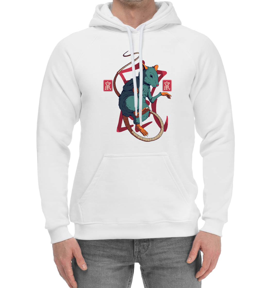 Мужской хлопковый худи с принтом «Китайская Крыса»