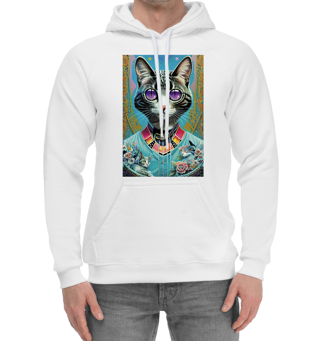 Мужской хлопковый худи с принтом «Кошечка с фиолетовыми глазами»