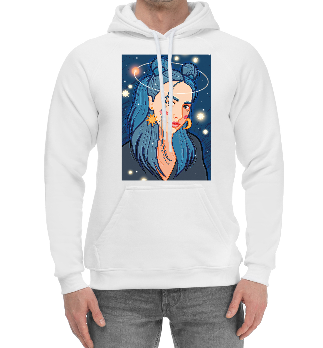 Мужской хлопковый худи с принтом «Космическая девушка»