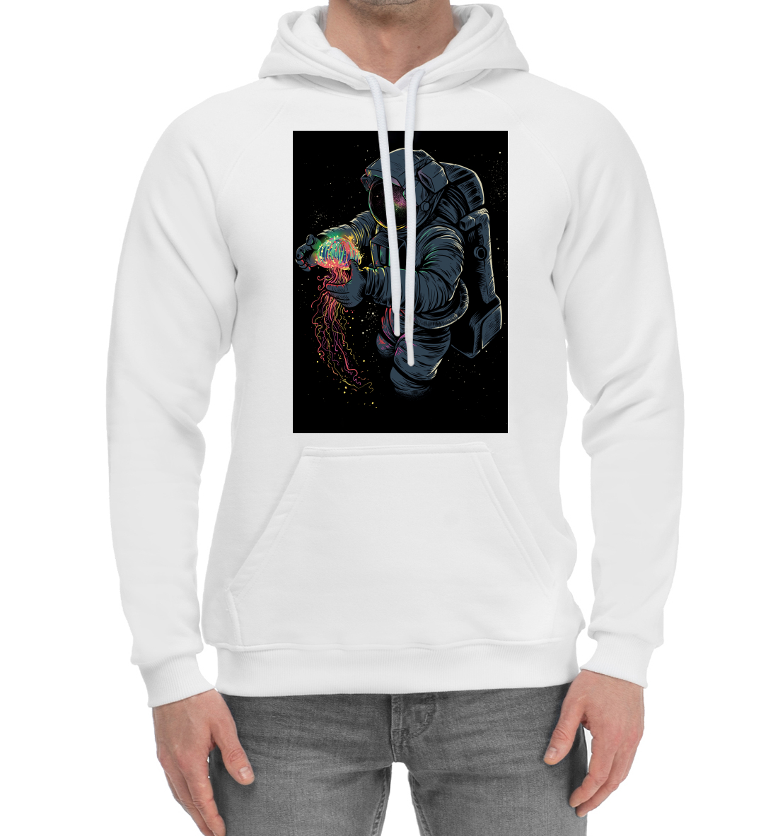 Мужской хлопковый худи с принтом «Космическая Медуза»