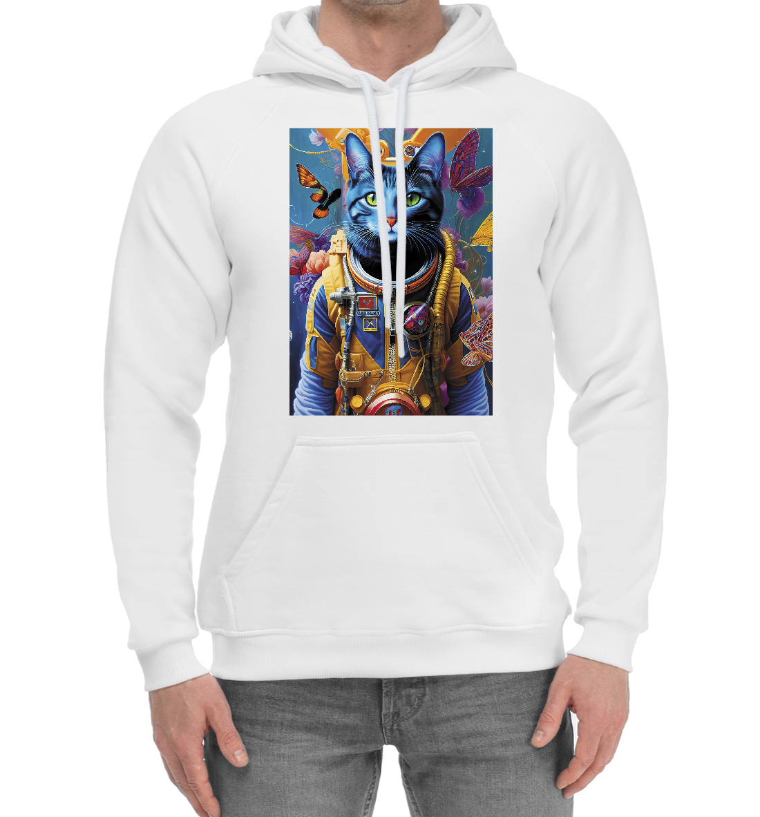 Мужской хлопковый худи с принтом «Котик бравый космонавт»