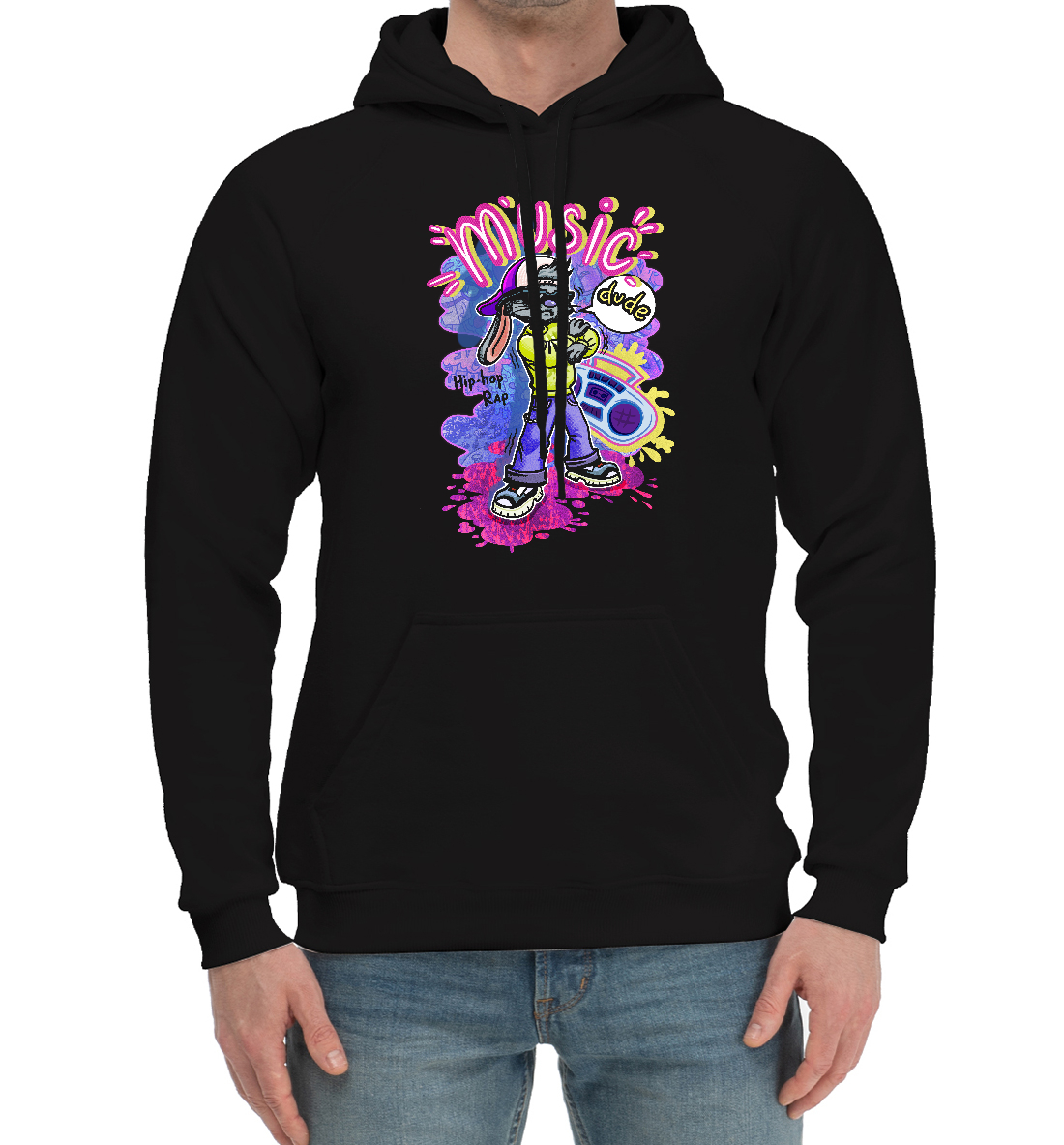 Мужской хлопковый худи с принтом «Кролик-рэпер»