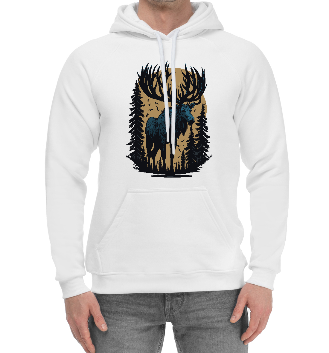 Мужской хлопковый худи с принтом «Лось в тайге»