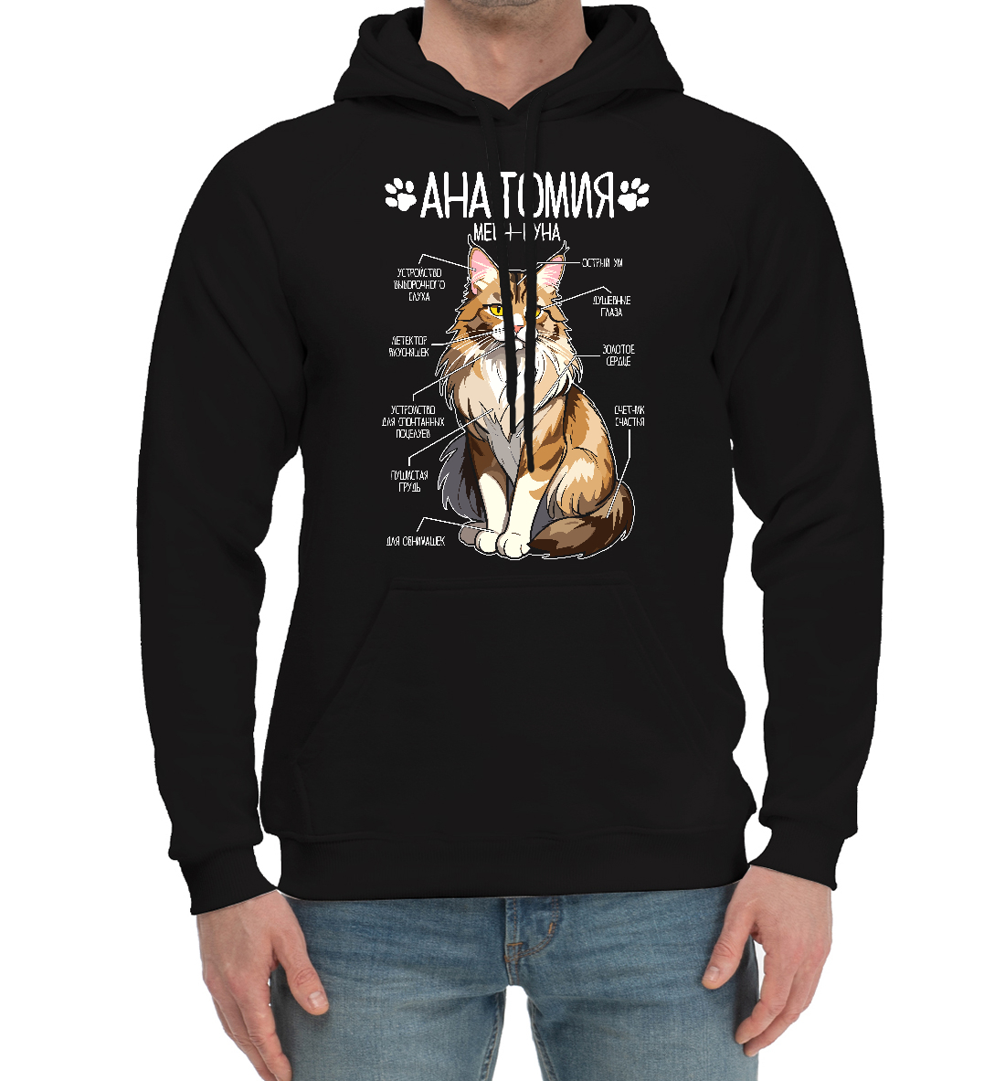 Мужской хлопковый худи с принтом «Мейн-кун анатомия (черный фон)»