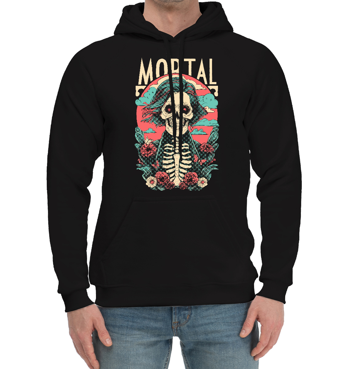 Мужской хлопковый худи с принтом «Mortal скелет»