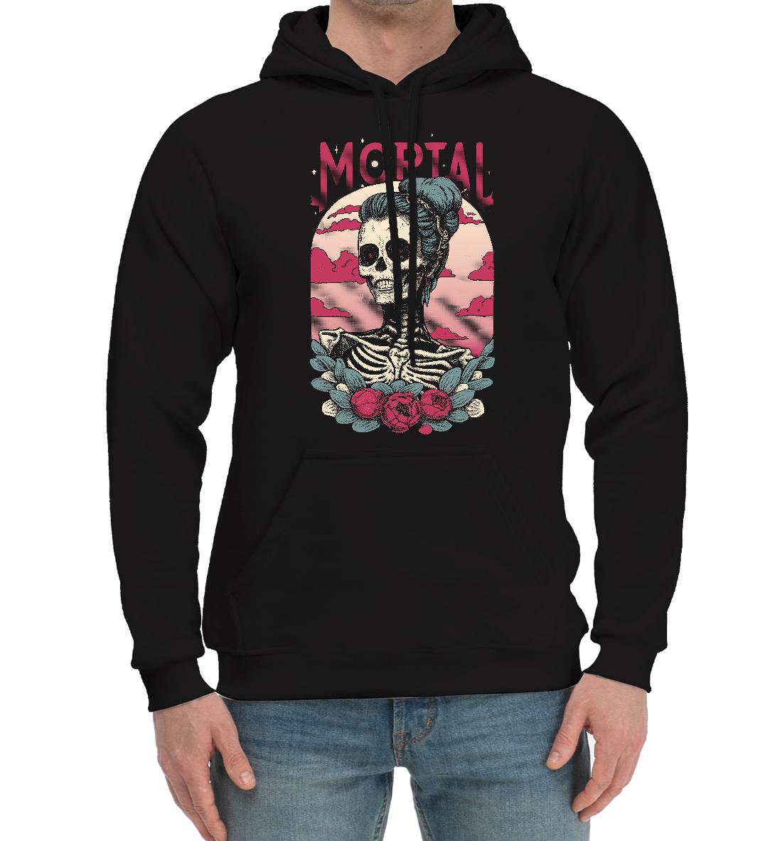 Мужской хлопковый худи с принтом «Mortal скелетон»