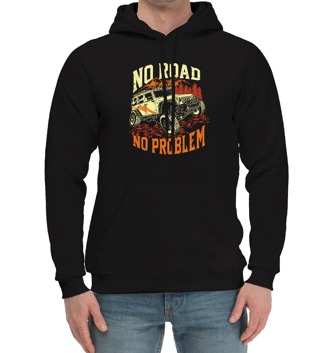 Мужской хлопковый худи с принтом «No Road, No Problem»