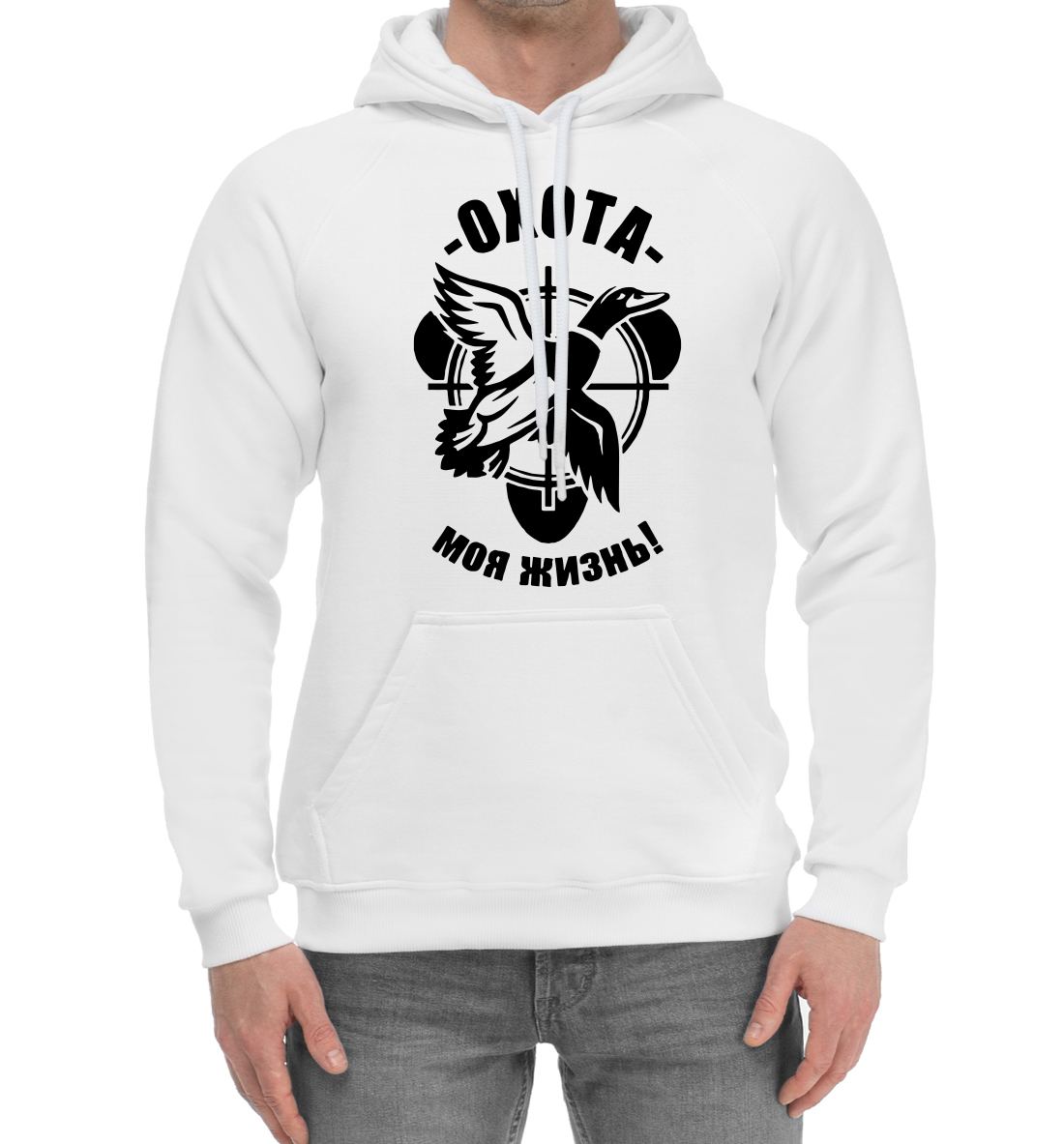 Мужской хлопковый худи с принтом «Охота - моя жизнь»