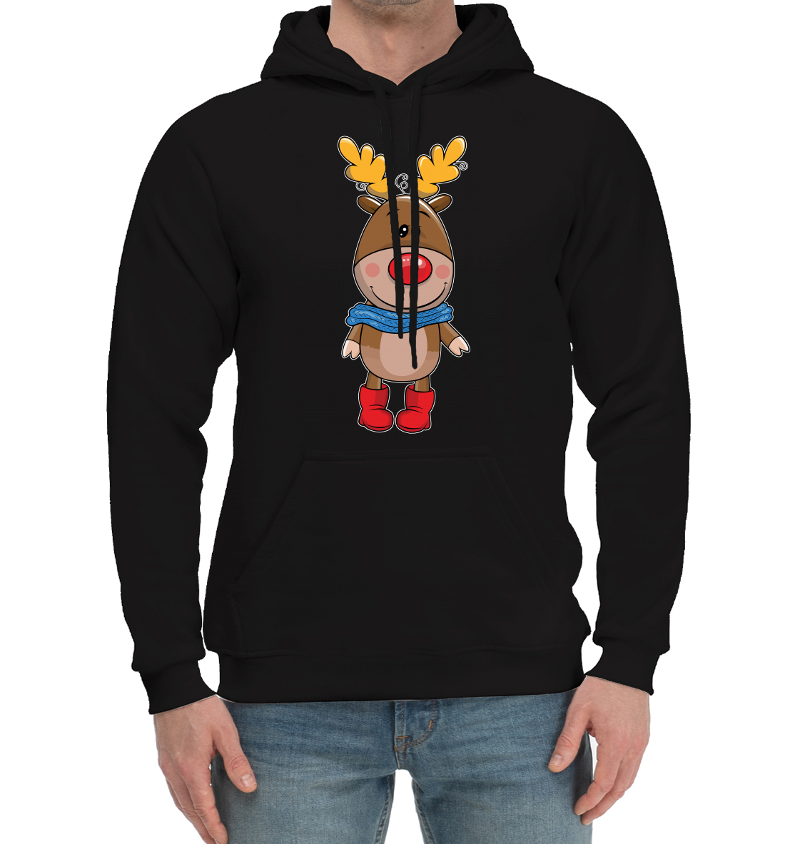 Мужской хлопковый худи с принтом «Олень в шарфике»