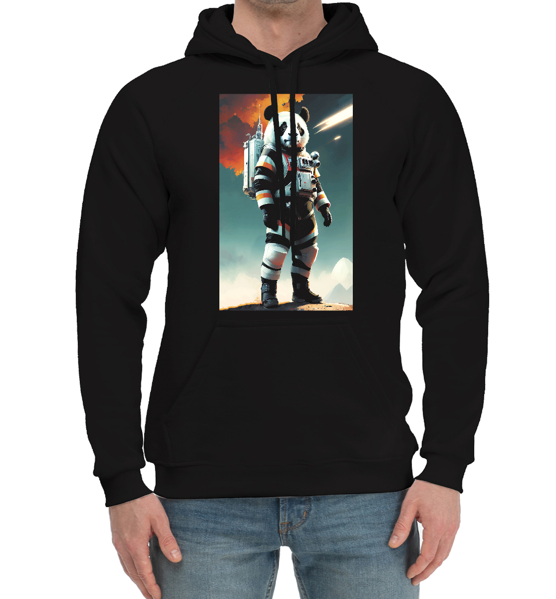 Мужской хлопковый худи с принтом «Панда бравый космонавт»