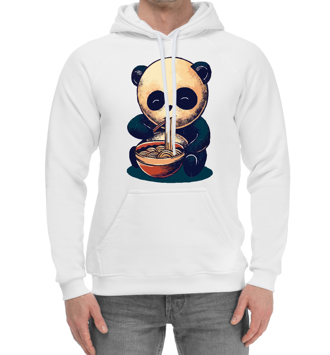 Мужской хлопковый худи с принтом «Панда и вкусняшка»