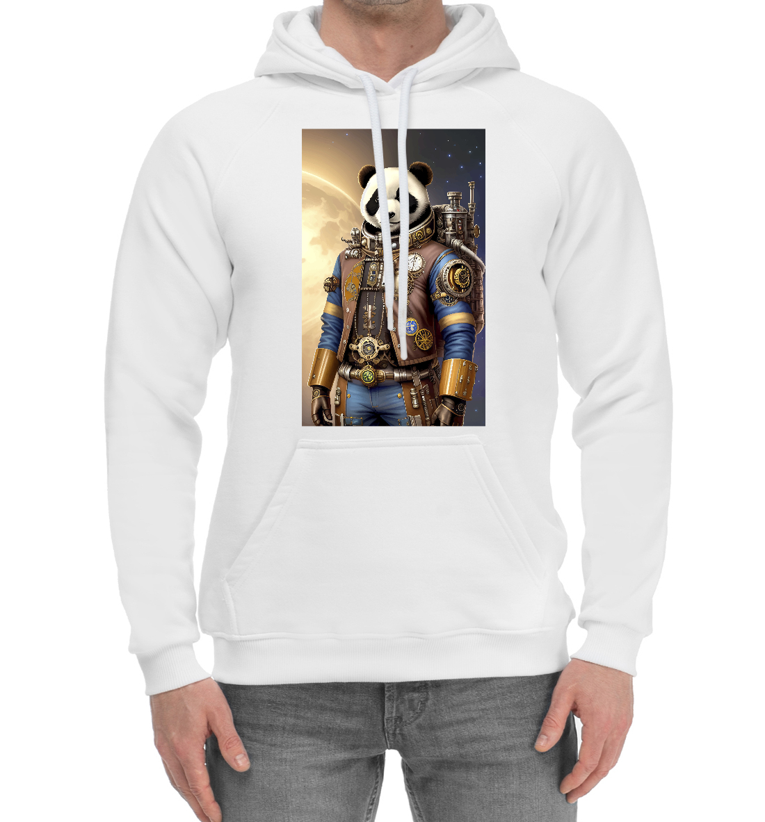 Мужской хлопковый худи с принтом «Панда космонавт - стимпанк»