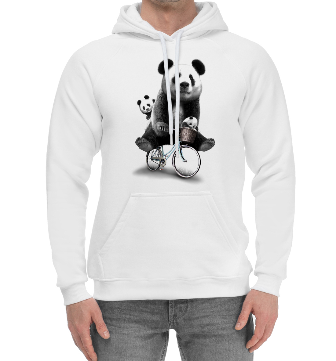 Мужской хлопковый худи с принтом «Панда на велосипеде»