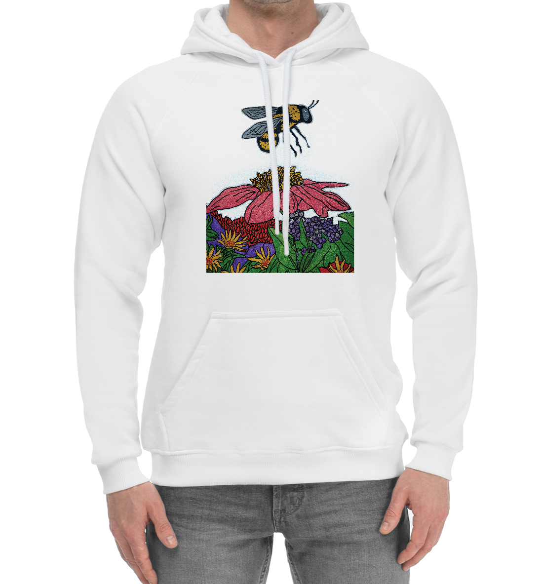 Мужской хлопковый худи с принтом «Пчела на работе»