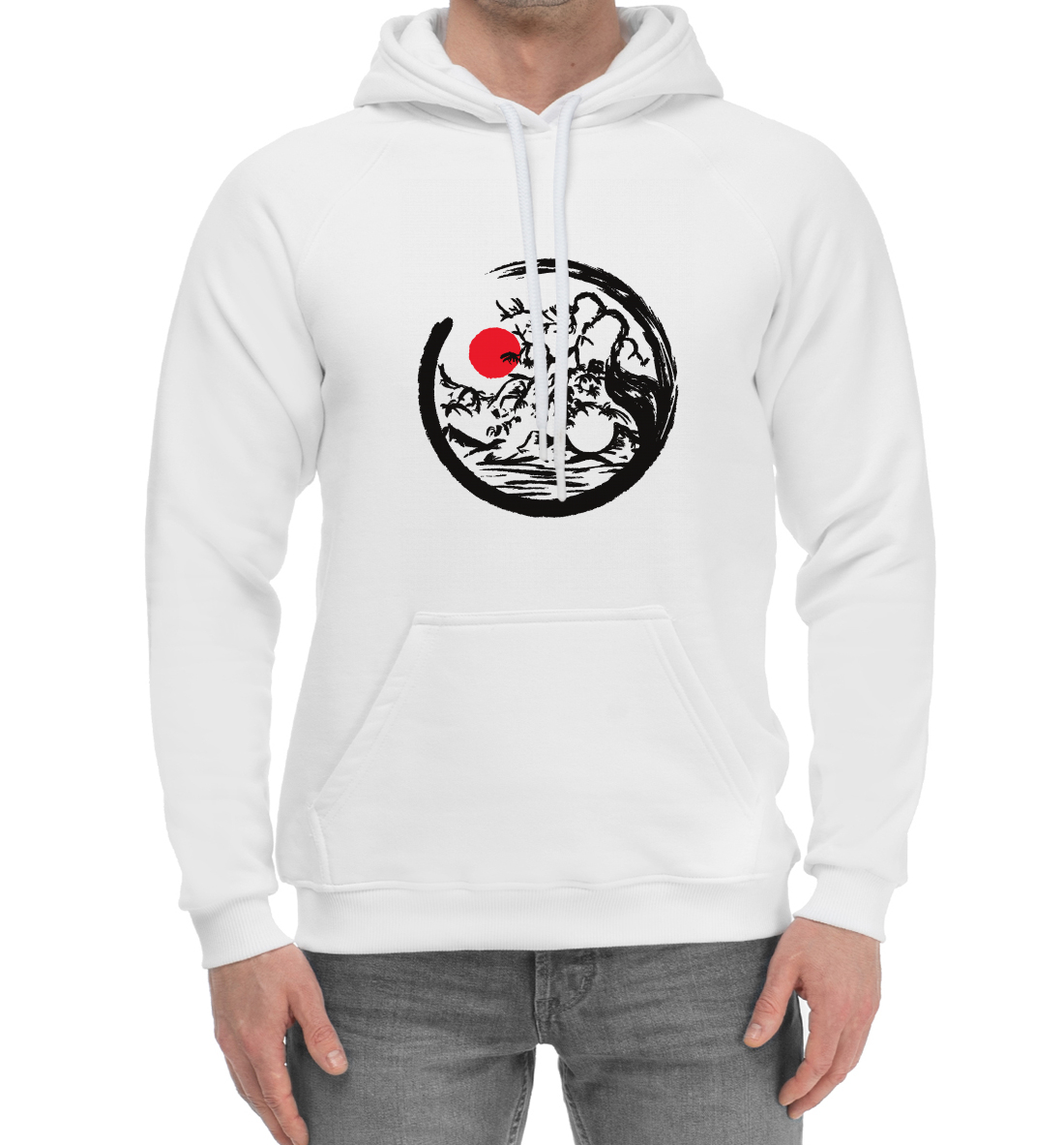 Мужской хлопковый худи с принтом «Пейзаж в круге Энсо Дзен»