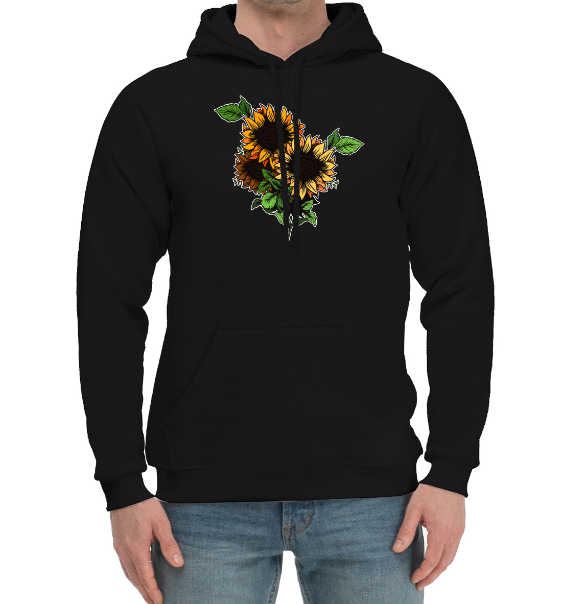 Мужской хлопковый худи с принтом «Подсолнухи»