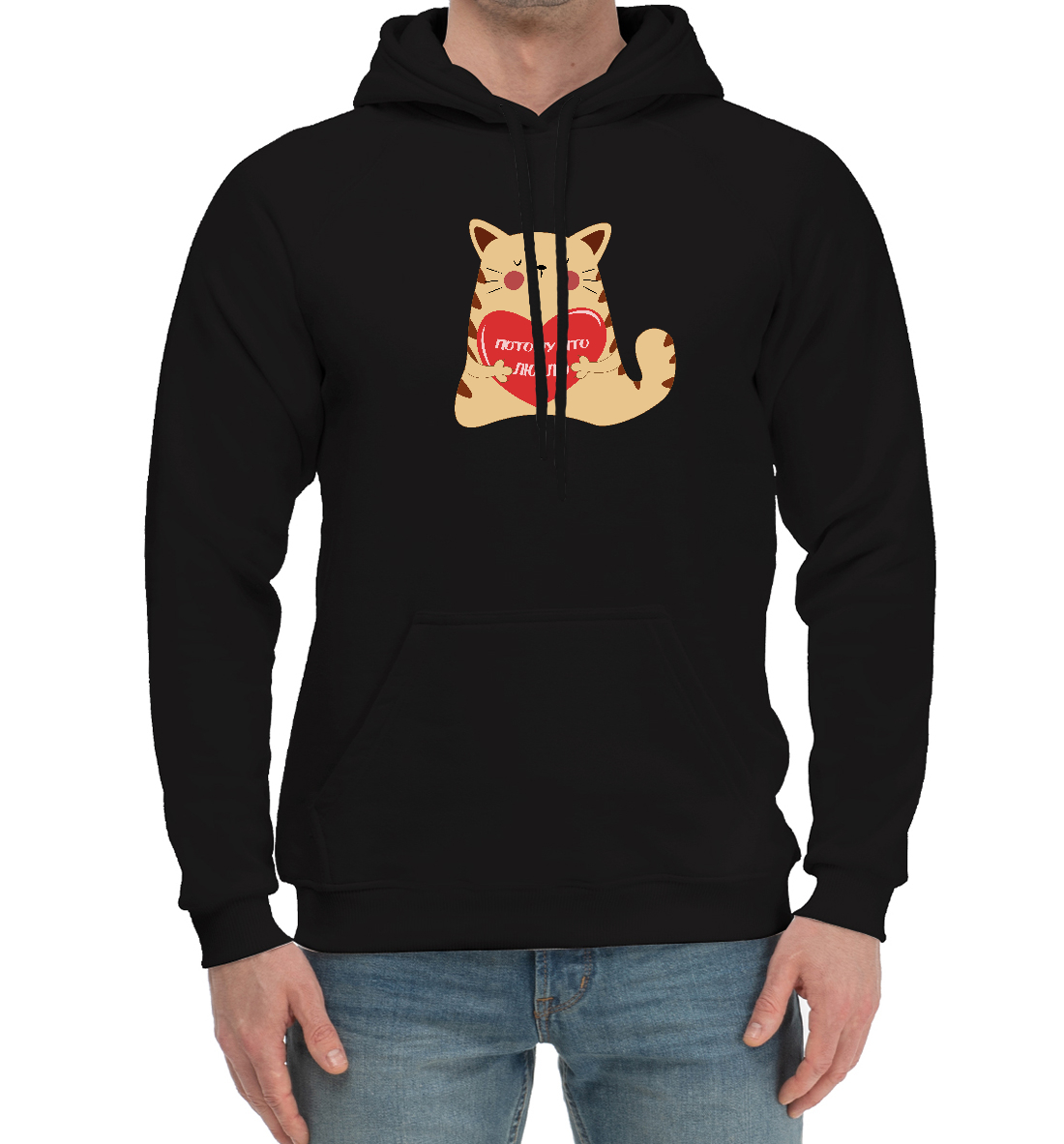 Мужской хлопковый худи с принтом «Потому что люблю»