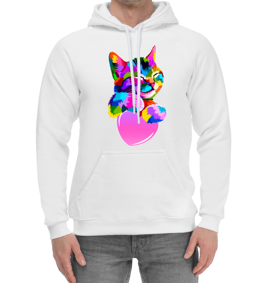 Мужской хлопковый худи с принтом «Радужный котенок»