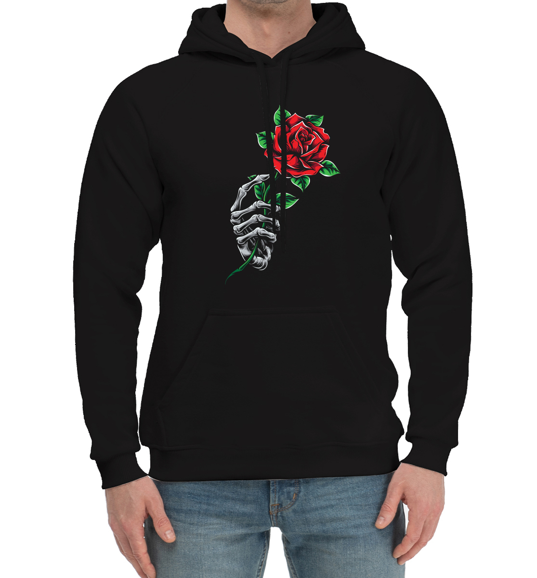 Мужской хлопковый худи с принтом «Роза в руке скелета»