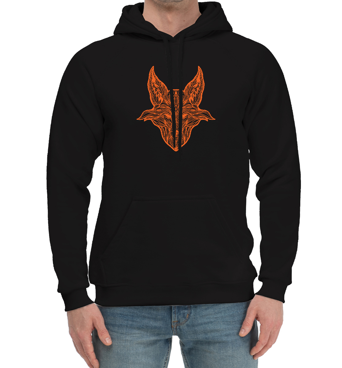 Мужской хлопковый худи с принтом «Рыжая лиса с узорами»