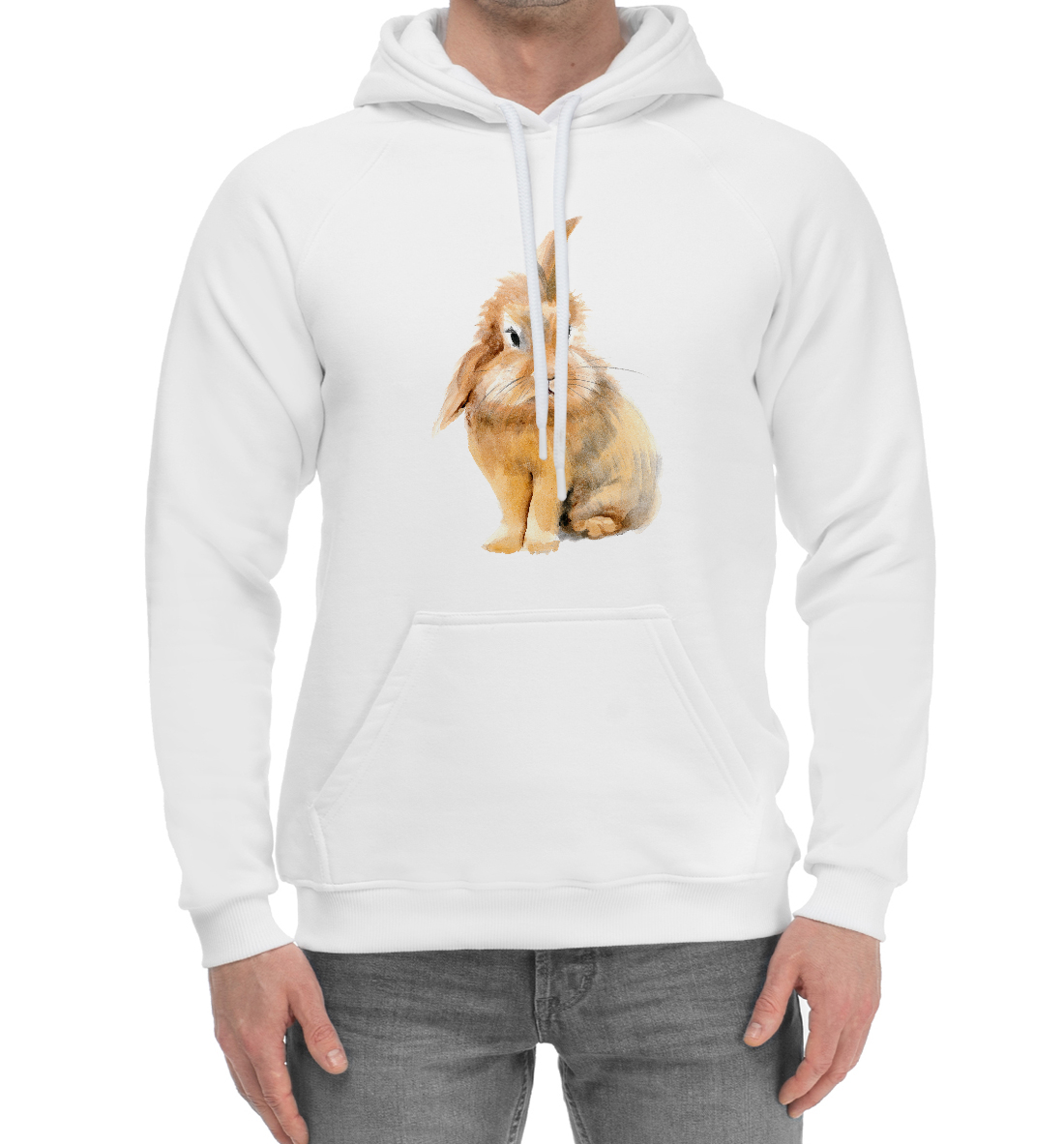 Мужской хлопковый худи с принтом «Рыжий кролик»