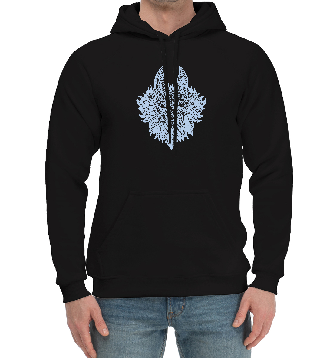 Мужской хлопковый худи с принтом «Серебристый волк»