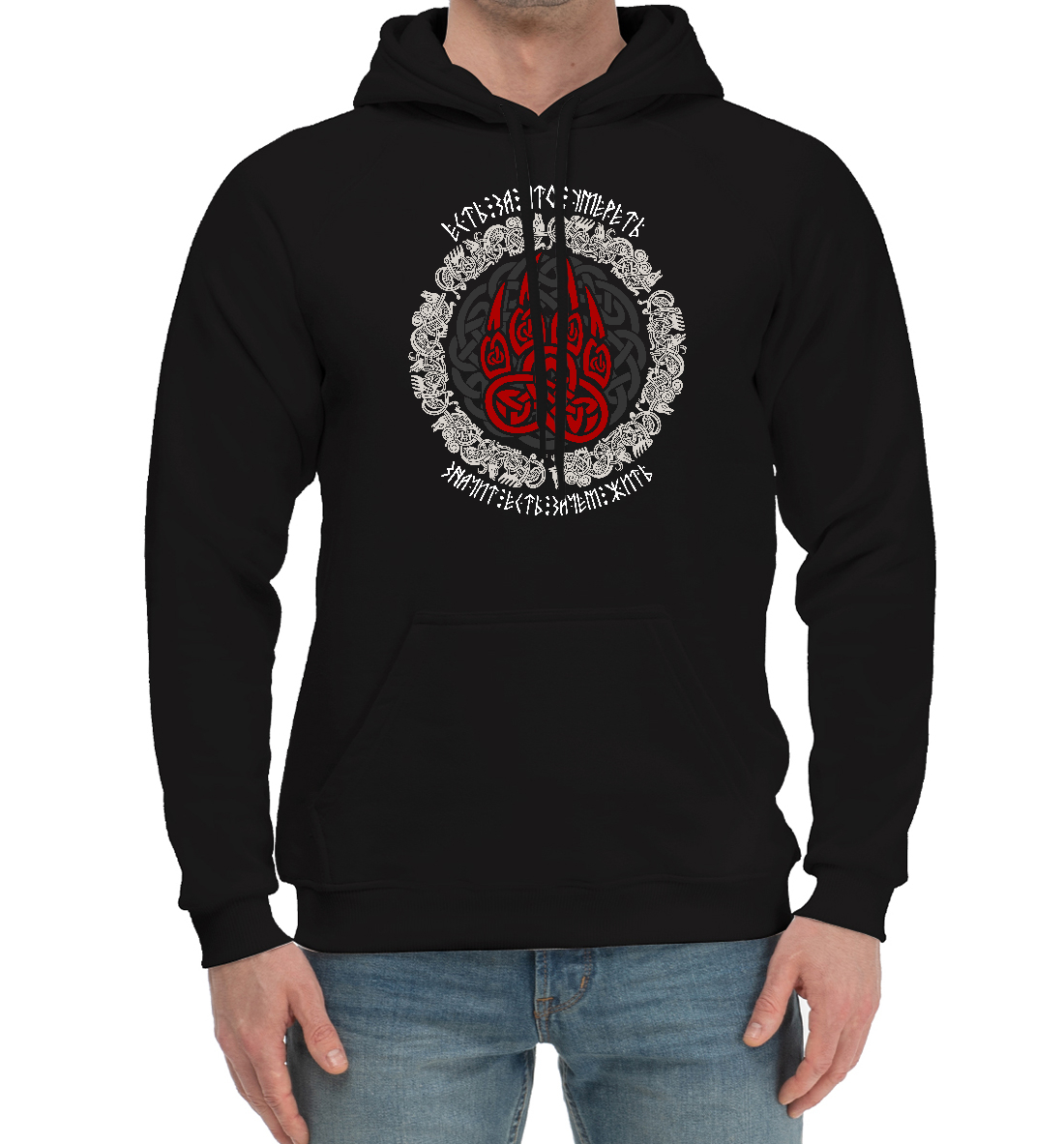 Мужской хлопковый худи с принтом «Символ-оберег волчья лапа (закон волка)»