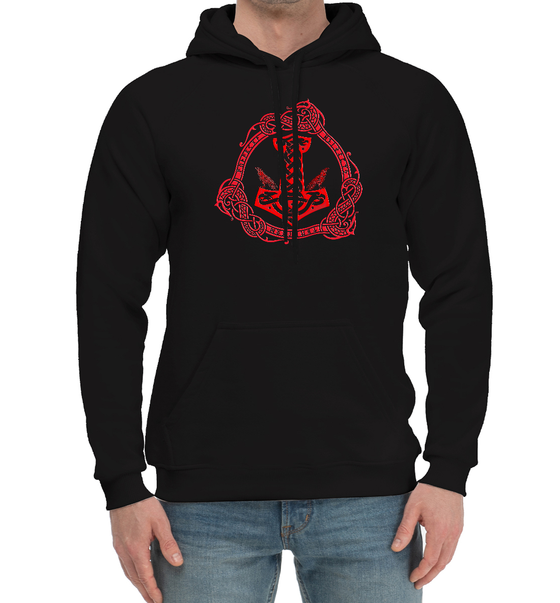 Мужской хлопковый худи с принтом «Символика Мьёльнир»