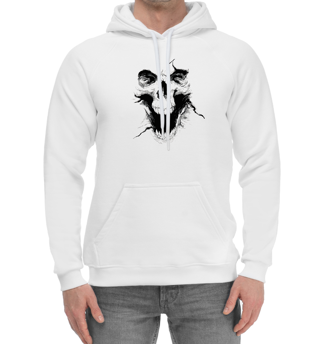 Мужской хлопковый худи с принтом «SKULLINK на белом фоне»