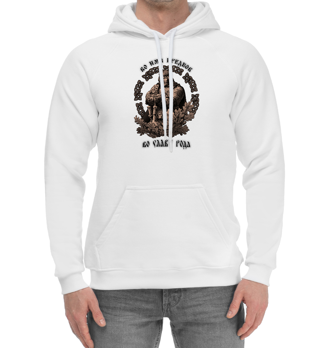 Мужской хлопковый худи с принтом «Славянский воин РОДа»