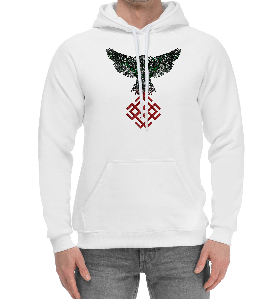 Мужской хлопковый худи с принтом «Сова с символом Молвинец»