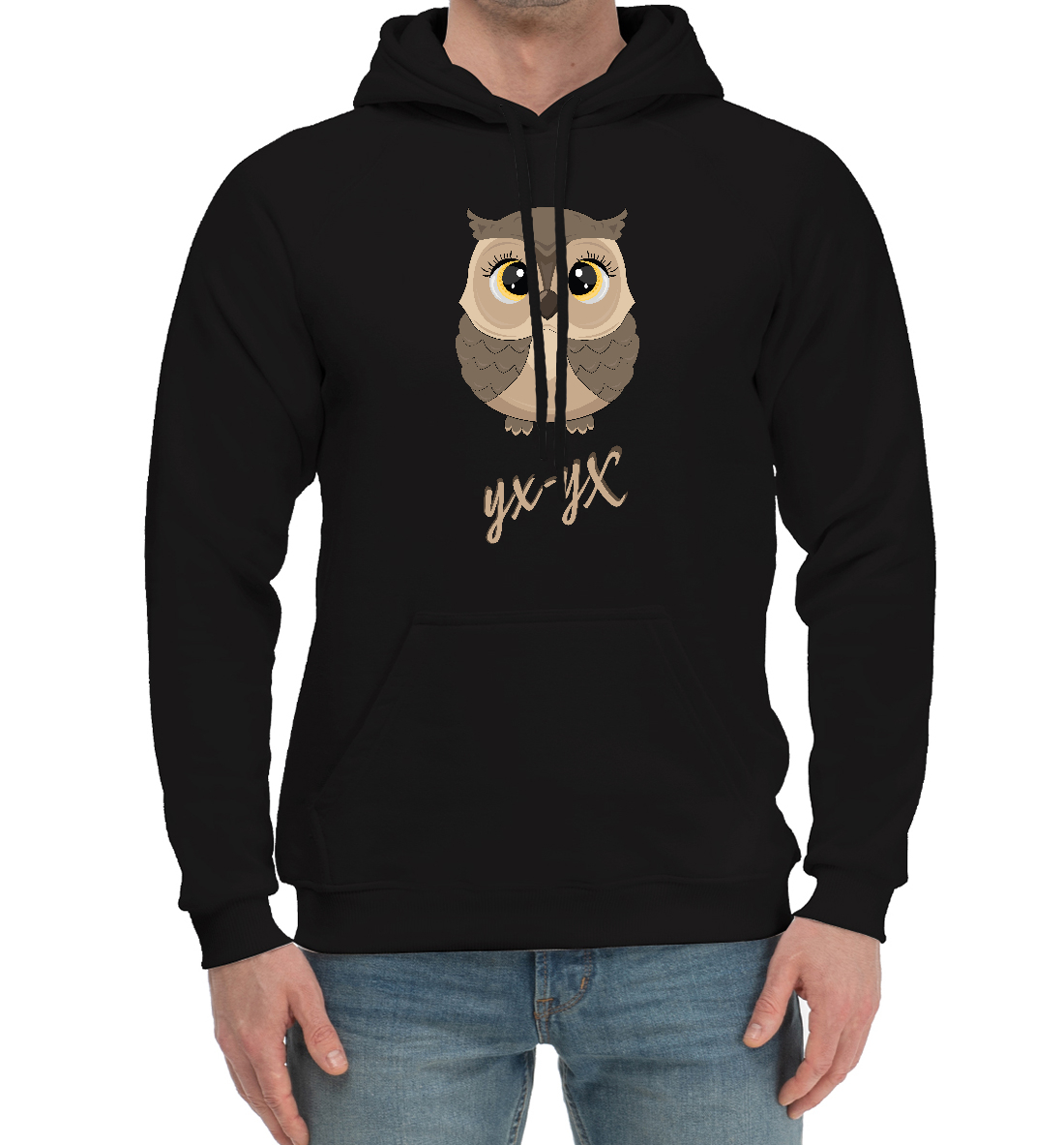 Мужской хлопковый худи с принтом «Сова УХ-УХ»