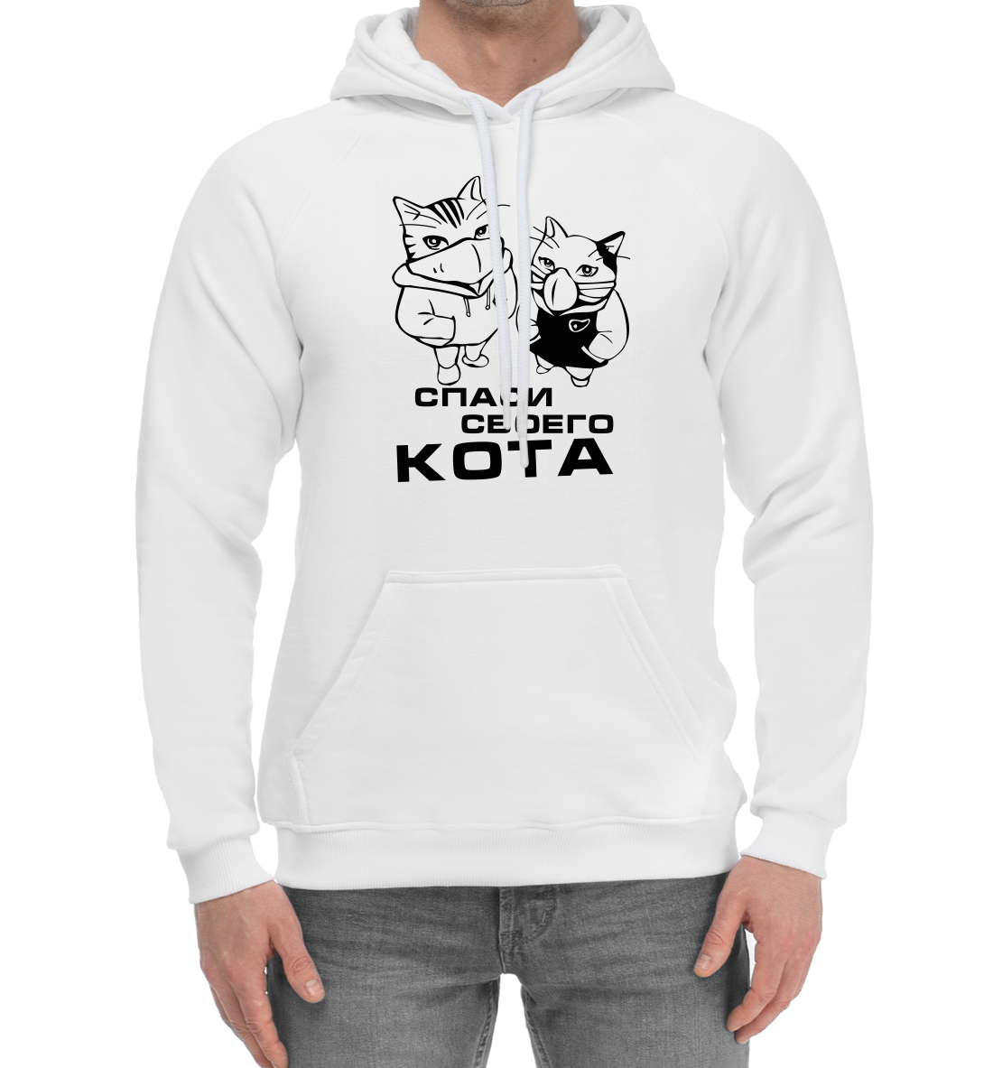 Мужской хлопковый худи с принтом «Спаси своего кота»