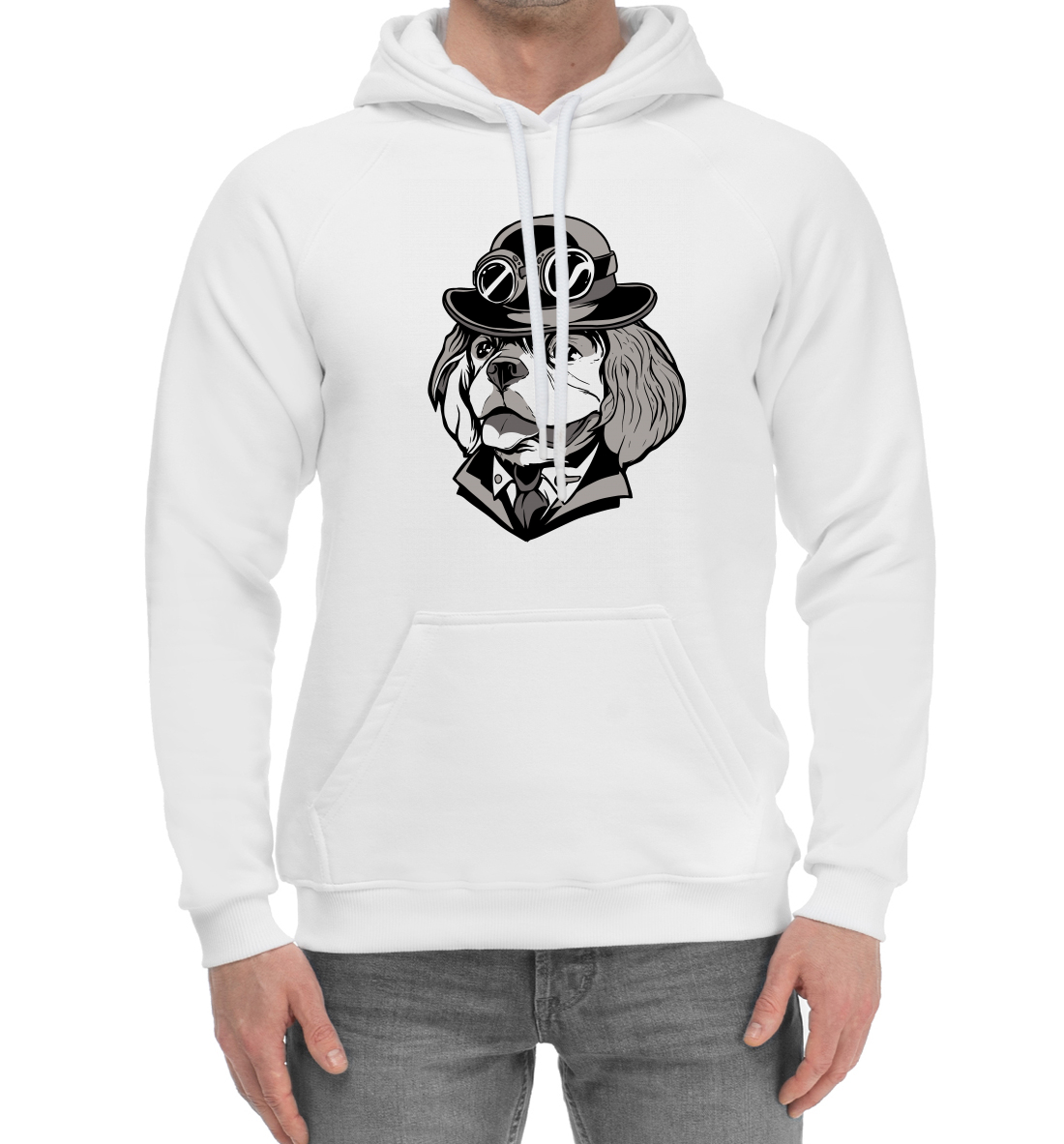 Мужской хлопковый худи с принтом «Steampunk Spaniel»
