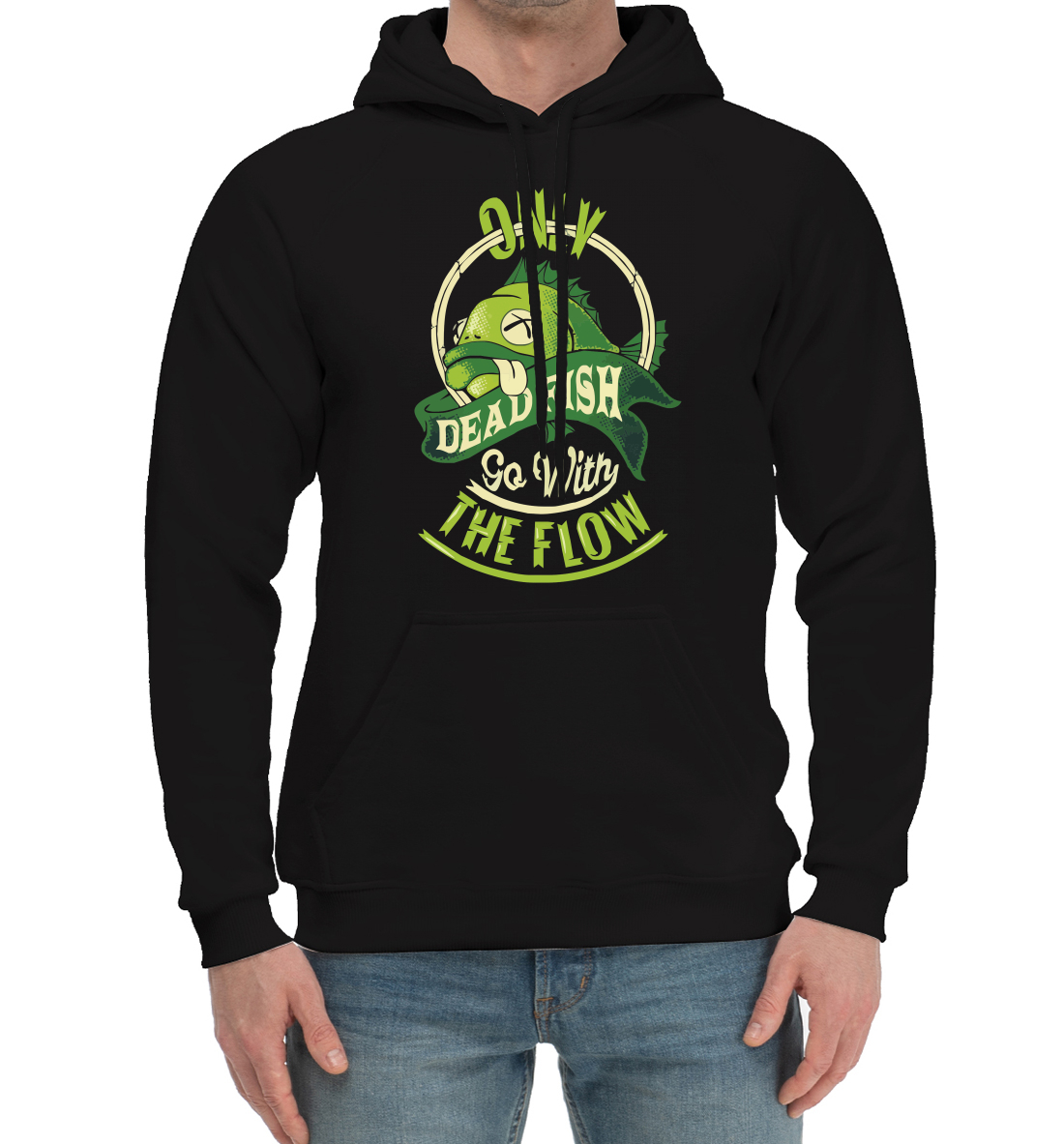 Мужской хлопковый худи с принтом «Только дохлая рыба»