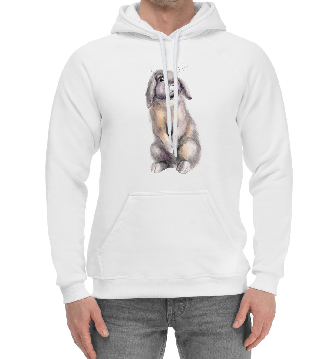 Мужской хлопковый худи с принтом «Удивленный кролик»