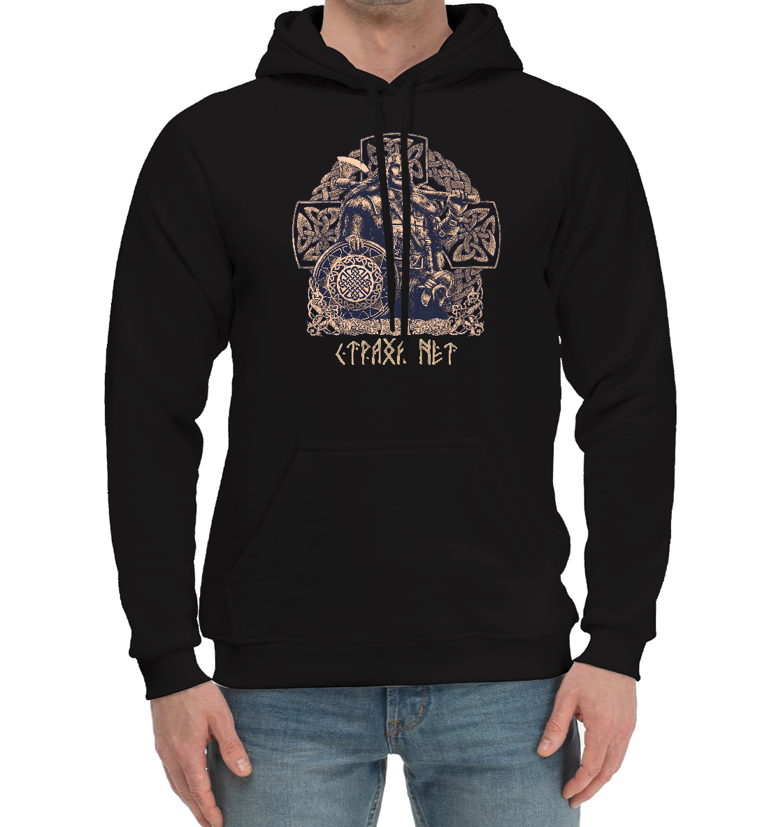 Мужской хлопковый худи с принтом «Воин в символике»