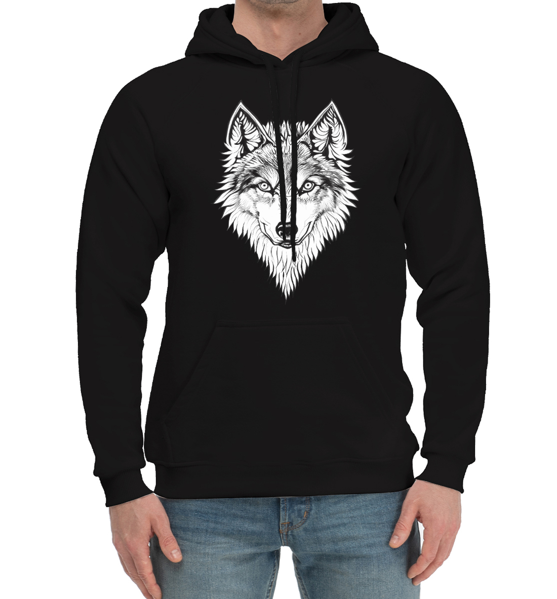 Мужской хлопковый худи с принтом «Волчий мотив»