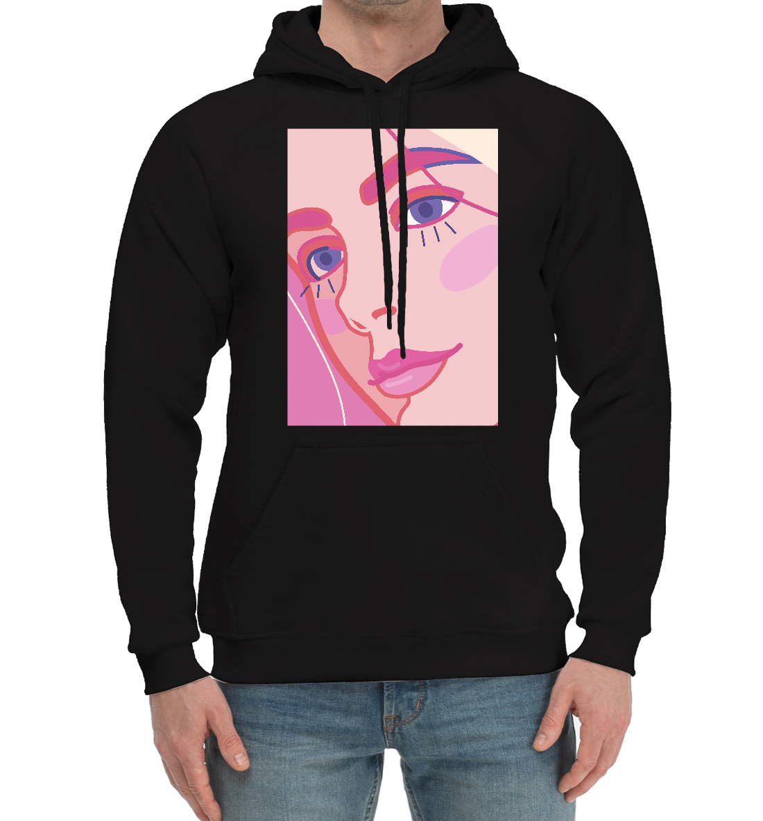 Мужской хлопковый худи с принтом «Яркий женский портрет»