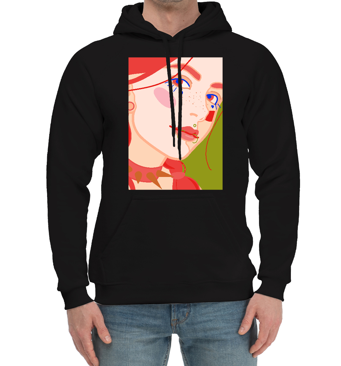 Мужской хлопковый худи с принтом «Яркий женский портрет с пирсингом»